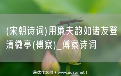 易優(yōu)作文網(wǎng)——(宋朝詩詞)用廉夫韻如諸友登清微亭(傅察)_傅察詩詞