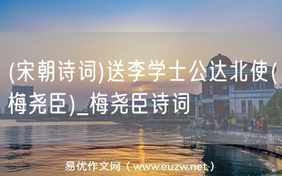 (宋朝詩(shī)詞)送李學(xué)士公達(dá)北使(梅堯臣)由易優(yōu)作文(易優(yōu)悅讀)為大家精心整理發(fā)布,學(xué)作文,學(xué)閱讀,提升語文閱讀寫作能力,就來易優(yōu)悅讀。作文培訓(xùn),閱讀培訓(xùn),易優(yōu)悅讀助力每個(gè)孩子成為語文學(xué)霸。