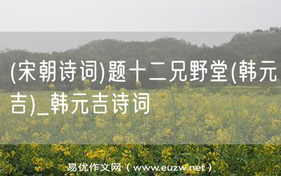 易優(yōu)作文網(wǎng)——(宋朝詩詞)題十二兄野堂(韓元吉)_韓元吉詩詞