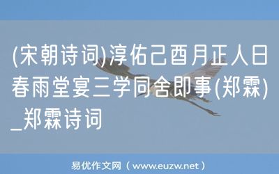易優(yōu)作文網(wǎng)——(宋朝詩詞)淳佑己酉月正人日春雨堂宴三學同舍即事(鄭霖)_鄭霖詩詞