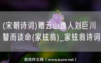 易優(yōu)作文網(wǎng)——(宋朝詩詞)贈云山逸人劉巨川瞽而談命(家鉉翁)_家鉉翁詩詞