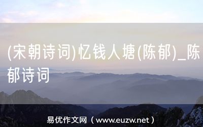 (宋朝詩(shī)詞)憶錢人塘(陳郁)由易優(yōu)作文(易優(yōu)悅讀)為大家精心整理發(fā)布,學(xué)作文,學(xué)閱讀,提升語文閱讀寫作能力,就來易優(yōu)悅讀。作文培訓(xùn),閱讀培訓(xùn),易優(yōu)悅讀助力每個(gè)孩子成為語文學(xué)霸。