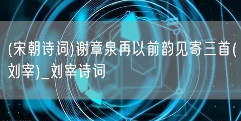 (宋朝詩(shī)詞)謝章泉再以前韻見寄三首(劉宰)_劉宰詩(shī)詞