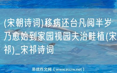 易優(yōu)作文網(wǎng)——(宋朝詩詞)移病還臺凡閱半歲乃愈始到家園視園夫治畦植(宋祁)_宋祁詩詞
