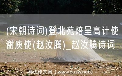 (宋朝詩詞)登北苑焙呈高計使謝庾使(趙汝騰)由易優(yōu)作文(易優(yōu)悅讀)為大家精心整理發(fā)布,學作文,學閱讀,提升語文閱讀寫作能力,就來易優(yōu)悅讀。作文培訓,閱讀培訓,易優(yōu)悅讀助力每個孩子成為語文學霸。