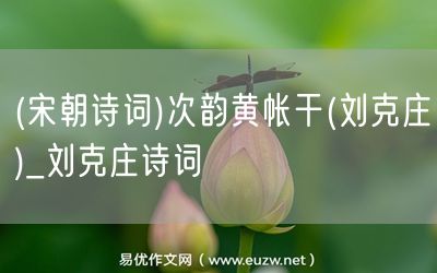 (宋朝詩(shī)詞)次韻黃帳干(劉克莊)由易優(yōu)作文(易優(yōu)悅讀)為大家精心整理發(fā)布,學(xué)作文,學(xué)閱讀,提升語(yǔ)文閱讀寫(xiě)作能力,就來(lái)易優(yōu)悅讀。作文培訓(xùn),閱讀培訓(xùn),易優(yōu)悅讀助力每個(gè)孩子成為語(yǔ)文學(xué)霸。