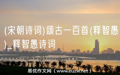 (宋朝詩詞)頌古一百首(釋智愚)由易優(yōu)作文(易優(yōu)悅讀)為大家精心整理發(fā)布,學(xué)作文,學(xué)閱讀,提升語文閱讀寫作能力,就來易優(yōu)悅讀。作文培訓(xùn),閱讀培訓(xùn),易優(yōu)悅讀助力每個(gè)孩子成為語文學(xué)霸。