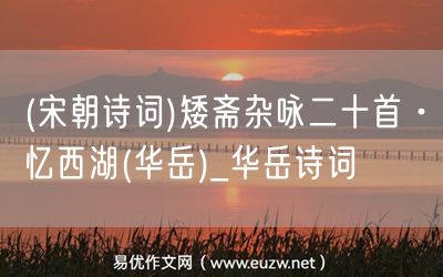 易優(yōu)作文網(wǎng)——(宋朝詩詞)矮齋雜詠二十首·憶西湖(華岳)_華岳詩詞