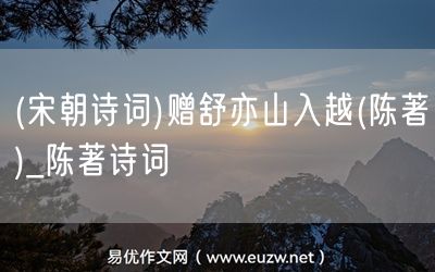 易優(yōu)作文網(wǎng)——(宋朝詩詞)贈舒亦山入越(陳著)_陳著詩詞