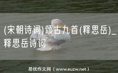 (宋朝詩詞)頌古九首(釋思岳)由易優(yōu)作文(易優(yōu)悅讀)為大家精心整理發(fā)布,學(xué)作文,學(xué)閱讀,提升語文閱讀寫作能力,就來易優(yōu)悅讀。作文培訓(xùn),閱讀培訓(xùn),易優(yōu)悅讀助力每個孩子成為語文學(xué)霸。