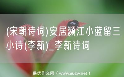 易優(yōu)作文網(wǎng)——(宋朝詩詞)安居瀕江小藍留三小詩(李新)_李新詩詞