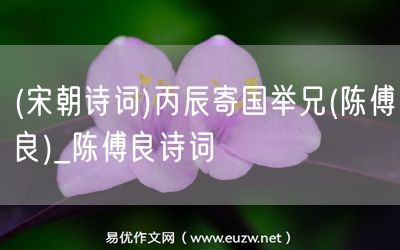 (宋朝詩詞)丙辰寄國舉兄(陳傅良)由易優(yōu)作文(易優(yōu)悅讀)為大家精心整理發(fā)布,學(xué)作文,學(xué)閱讀,提升語文閱讀寫作能力,就來易優(yōu)悅讀。作文培訓(xùn),閱讀培訓(xùn),易優(yōu)悅讀助力每個孩子成為語文學(xué)霸。