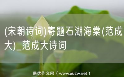 易優(yōu)作文網(wǎng)——(宋朝詩詞)寄題石湖海棠(范成大)_范成大詩詞