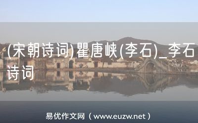 (宋朝詩(shī)詞)瞿唐峽(李石)由易優(yōu)作文(易優(yōu)悅讀)為大家精心整理發(fā)布,學(xué)作文,學(xué)閱讀,提升語(yǔ)文閱讀寫(xiě)作能力,就來(lái)易優(yōu)悅讀。作文培訓(xùn),閱讀培訓(xùn),易優(yōu)悅讀助力每個(gè)孩子成為語(yǔ)文學(xué)霸。
