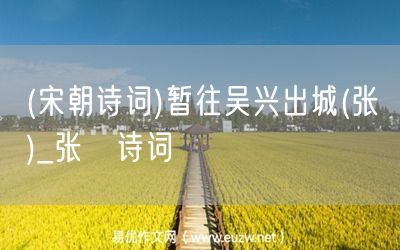 (宋朝詩詞)暫往吳興出城(張镃)由易優(yōu)作文(易優(yōu)悅讀)為大家精心整理發(fā)布,學作文,學閱讀,提升語文閱讀寫作能力,就來易優(yōu)悅讀。作文培訓,閱讀培訓,易優(yōu)悅讀助力每個孩子成為語文學霸。