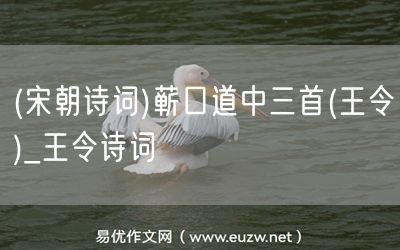 (宋朝詩(shī)詞)蘄口道中三首(王令)由易優(yōu)作文(易優(yōu)悅讀)為大家精心整理發(fā)布,學(xué)作文,學(xué)閱讀,提升語(yǔ)文閱讀寫作能力,就來(lái)易優(yōu)悅讀。作文培訓(xùn),閱讀培訓(xùn),易優(yōu)悅讀助力每個(gè)孩子成為語(yǔ)文學(xué)霸。