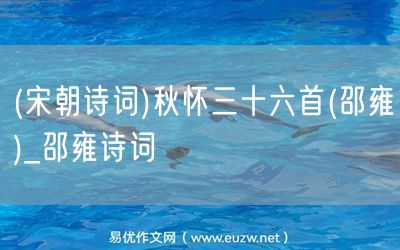 (宋朝詩詞)秋懷三十六首(邵雍)由易優(yōu)作文(易優(yōu)悅讀)為大家精心整理發(fā)布,學(xué)作文,學(xué)閱讀,提升語文閱讀寫作能力,就來易優(yōu)悅讀。作文培訓(xùn),閱讀培訓(xùn),易優(yōu)悅讀助力每個孩子成為語文學(xué)霸。