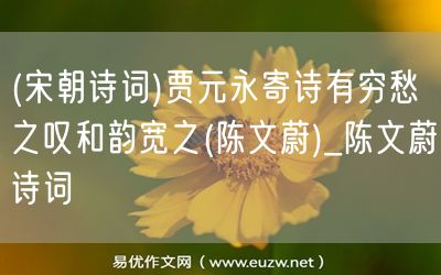 易優(yōu)作文網(wǎng)——(宋朝詩詞)賈元永寄詩有窮愁之嘆和韻寬之(陳文蔚)_陳文蔚詩詞