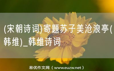 (宋朝詩詞)寄題蘇子美滄浪亭(韓維)由易優(yōu)作文(易優(yōu)悅讀)為大家精心整理發(fā)布,學(xué)作文,學(xué)閱讀,提升語文閱讀寫作能力,就來易優(yōu)悅讀。作文培訓(xùn),閱讀培訓(xùn),易優(yōu)悅讀助力每個(gè)孩子成為語文學(xué)霸。