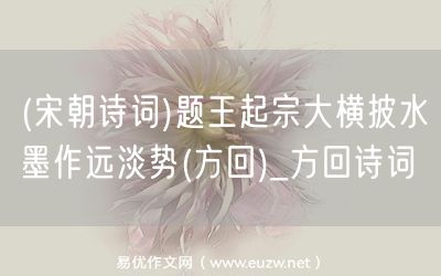 (宋朝詩(shī)詞)題王起宗大橫披水墨作遠(yuǎn)淡勢(shì)(方回)由易優(yōu)作文(易優(yōu)悅讀)為大家精心整理發(fā)布,學(xué)作文,學(xué)閱讀,提升語(yǔ)文閱讀寫(xiě)作能力,就來(lái)易優(yōu)悅讀。作文培訓(xùn),閱讀培訓(xùn),易優(yōu)悅讀助力每個(gè)孩子成為語(yǔ)文學(xué)霸。