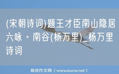 易優(yōu)作文網(wǎng)——(宋朝詩(shī)詞)題王才臣南山隱居六詠·南谷(楊萬(wàn)里)_楊萬(wàn)里詩(shī)詞