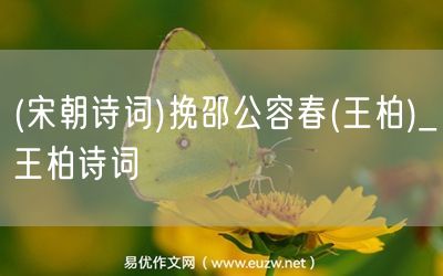 易優(yōu)作文網(wǎng)——(宋朝詩詞)挽邵公容春(王柏)_王柏詩詞