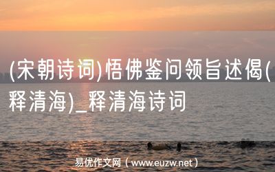 (宋朝詩(shī)詞)悟佛鑒問(wèn)領(lǐng)旨述偈(釋清海)由易優(yōu)作文(易優(yōu)悅讀)為大家精心整理發(fā)布,學(xué)作文,學(xué)閱讀,提升語(yǔ)文閱讀寫作能力,就來(lái)易優(yōu)悅讀。作文培訓(xùn),閱讀培訓(xùn),易優(yōu)悅讀助力每個(gè)孩子成為語(yǔ)文學(xué)霸。