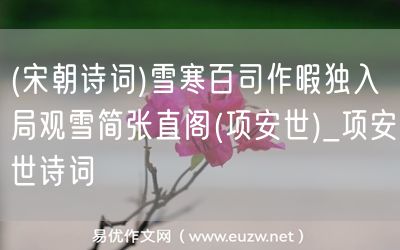 易優(yōu)作文網(wǎng)——(宋朝詩詞)雪寒百司作暇獨(dú)入局觀雪簡張直閣(項(xiàng)安世)_項(xiàng)安世詩詞