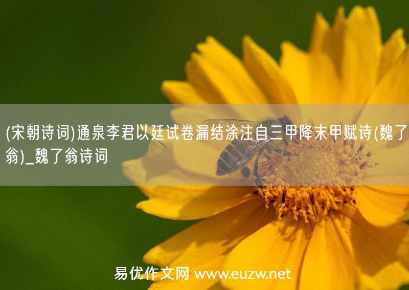 (宋朝詩詞)通泉李君以廷試卷漏結(jié)涂注自三甲降末甲賦詩(魏了翁)由易優(yōu)作文(易優(yōu)悅讀)為大家精心整理發(fā)布,學(xué)作文,學(xué)閱讀,提升語文閱讀寫作能力,就來易優(yōu)悅讀。作文培訓(xùn),閱讀培訓(xùn),易優(yōu)悅讀助力每個(gè)孩子成為語文學(xué)霸。