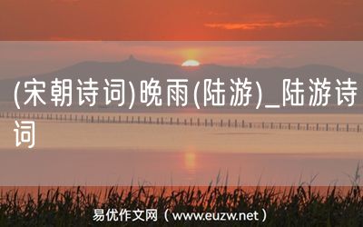 (宋朝詩詞)晚雨(陸游)由易優(yōu)作文(易優(yōu)悅讀)為大家精心整理發(fā)布,學(xué)作文,學(xué)閱讀,提升語文閱讀寫作能力,就來易優(yōu)悅讀。作文培訓(xùn),閱讀培訓(xùn),易優(yōu)悅讀助力每個孩子成為語文學(xué)霸。
