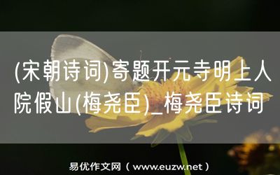 (宋朝詩詞)寄題開元寺明上人院假山(梅堯臣)由易優(yōu)作文(易優(yōu)悅讀)為大家精心整理發(fā)布,學(xué)作文,學(xué)閱讀,提升語文閱讀寫作能力,就來易優(yōu)悅讀。作文培訓(xùn),閱讀培訓(xùn),易優(yōu)悅讀助力每個孩子成為語文學(xué)霸。