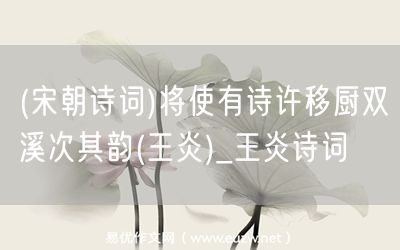 易優(yōu)作文網(wǎng)——(宋朝詩(shī)詞)將使有詩(shī)許移廚雙溪次其韻(王炎)_王炎詩(shī)詞
