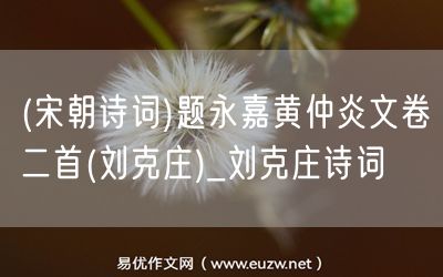 易優(yōu)作文網(wǎng)——(宋朝詩詞)題永嘉黃仲炎文卷二首(劉克莊)_劉克莊詩詞