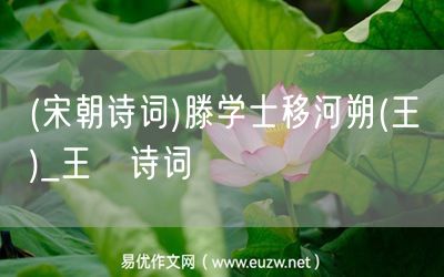 (宋朝詩詞)滕學(xué)士移河朔(王珪)由易優(yōu)作文(易優(yōu)悅讀)為大家精心整理發(fā)布,學(xué)作文,學(xué)閱讀,提升語文閱讀寫作能力,就來易優(yōu)悅讀。作文培訓(xùn),閱讀培訓(xùn),易優(yōu)悅讀助力每個孩子成為語文學(xué)霸。