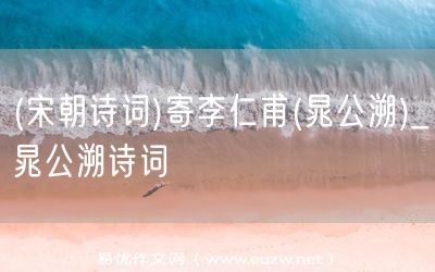 易優(yōu)作文網(wǎng)——(宋朝詩詞)寄李仁甫(晁公溯)_晁公溯詩詞