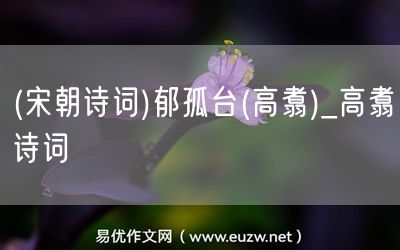 (宋朝詩(shī)詞)郁孤臺(tái)(高翥)由易優(yōu)作文(易優(yōu)悅讀)為大家精心整理發(fā)布,學(xué)作文,學(xué)閱讀,提升語(yǔ)文閱讀寫作能力,就來易優(yōu)悅讀。作文培訓(xùn),閱讀培訓(xùn),易優(yōu)悅讀助力每個(gè)孩子成為語(yǔ)文學(xué)霸。
