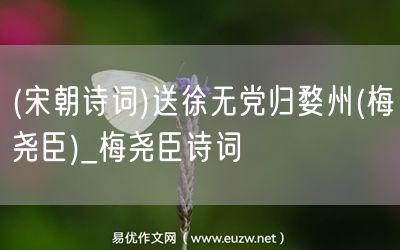 (宋朝詩詞)送徐無黨歸婺州(梅堯臣)由易優(yōu)作文(易優(yōu)悅讀)為大家精心整理發(fā)布,學(xué)作文,學(xué)閱讀,提升語文閱讀寫作能力,就來易優(yōu)悅讀。作文培訓(xùn),閱讀培訓(xùn),易優(yōu)悅讀助力每個(gè)孩子成為語文學(xué)霸。