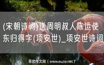 易優(yōu)作文網(wǎng)——(宋朝詩詞)送周明叔人陳運使東歸得字(項安世)_項安世詩詞