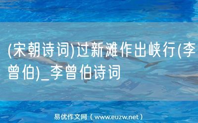 (宋朝詩(shī)詞)過(guò)新灘作出峽行(李曾伯)由易優(yōu)作文(易優(yōu)悅讀)為大家精心整理發(fā)布,學(xué)作文,學(xué)閱讀,提升語(yǔ)文閱讀寫作能力,就來(lái)易優(yōu)悅讀。作文培訓(xùn),閱讀培訓(xùn),易優(yōu)悅讀助力每個(gè)孩子成為語(yǔ)文學(xué)霸。