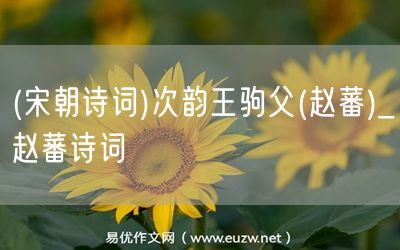 (宋朝詩詞)次韻王駒父(趙蕃)由易優(yōu)作文(易優(yōu)悅讀)為大家精心整理發(fā)布,學(xué)作文,學(xué)閱讀,提升語文閱讀寫作能力,就來易優(yōu)悅讀。作文培訓(xùn),閱讀培訓(xùn),易優(yōu)悅讀助力每個孩子成為語文學(xué)霸。