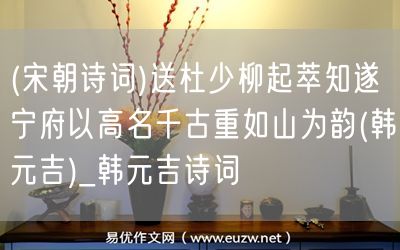 易優(yōu)作文網(wǎng)——(宋朝詩詞)送杜少柳起萃知遂寧府以高名千古重如山為韻(韓元吉)_韓元吉詩詞