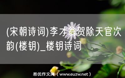 (宋朝詩(shī)詞)李才翁賀除天官次韻(樓鑰)由易優(yōu)作文(易優(yōu)悅讀)為大家精心整理發(fā)布,學(xué)作文,學(xué)閱讀,提升語(yǔ)文閱讀寫作能力,就來(lái)易優(yōu)悅讀。作文培訓(xùn),閱讀培訓(xùn),易優(yōu)悅讀助力每個(gè)孩子成為語(yǔ)文學(xué)霸。