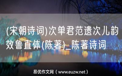 (宋朝詩詞)次單君范遺次兒韻效魯直體(陳著)由易優(yōu)作文(易優(yōu)悅讀)為大家精心整理發(fā)布,學(xué)作文,學(xué)閱讀,提升語文閱讀寫作能力,就來易優(yōu)悅讀。作文培訓(xùn),閱讀培訓(xùn),易優(yōu)悅讀助力每個(gè)孩子成為語文學(xué)霸。
