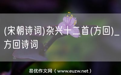 (宋朝詩詞)雜興十二首(方回)由易優(yōu)作文(易優(yōu)悅讀)為大家精心整理發(fā)布,學作文,學閱讀,提升語文閱讀寫作能力,就來易優(yōu)悅讀。作文培訓,閱讀培訓,易優(yōu)悅讀助力每個孩子成為語文學霸。