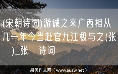 (宋朝詩(shī)詞)游誠(chéng)之來(lái)廣西相從幾一年今當(dāng)赴官九江極與之(張栻)由易優(yōu)作文(易優(yōu)悅讀)為大家精心整理發(fā)布,學(xué)作文,學(xué)閱讀,提升語(yǔ)文閱讀寫作能力,就來(lái)易優(yōu)悅讀。作文培訓(xùn),閱讀培訓(xùn),易優(yōu)悅讀助力每個(gè)孩子成為語(yǔ)文學(xué)霸。