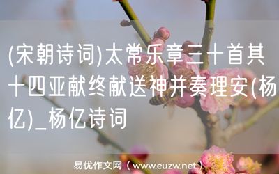 易優(yōu)作文網(wǎng)——(宋朝詩詞)太常樂章三十首其十四亞獻終獻送神并奏理安(楊億)_楊億詩詞