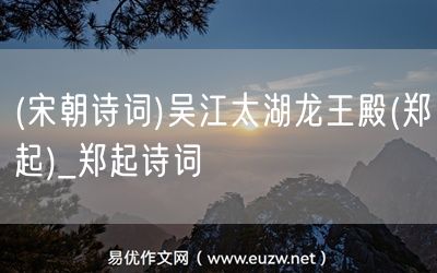 易優(yōu)作文網(wǎng)——(宋朝詩(shī)詞)吳江太湖龍王殿(鄭起)_鄭起詩(shī)詞