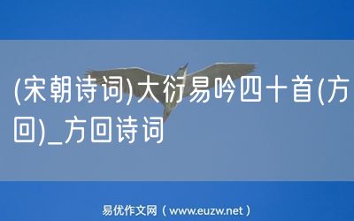 (宋朝詩詞)大衍易吟四十首(方回)由易優(yōu)作文(易優(yōu)悅讀)為大家精心整理發(fā)布,學(xué)作文,學(xué)閱讀,提升語文閱讀寫作能力,就來易優(yōu)悅讀。作文培訓(xùn),閱讀培訓(xùn),易優(yōu)悅讀助力每個(gè)孩子成為語文學(xué)霸。