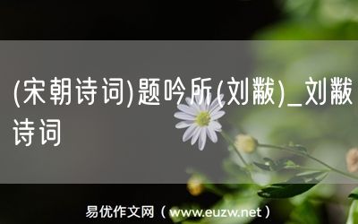 易優(yōu)作文網——(宋朝詩詞)題吟所(劉黻)_劉黻詩詞