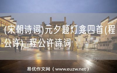 (宋朝詩詞)元夕題燈龕四首(程公許)由易優(yōu)作文(易優(yōu)悅讀)為大家精心整理發(fā)布,學(xué)作文,學(xué)閱讀,提升語文閱讀寫作能力,就來易優(yōu)悅讀。作文培訓(xùn),閱讀培訓(xùn),易優(yōu)悅讀助力每個(gè)孩子成為語文學(xué)霸。